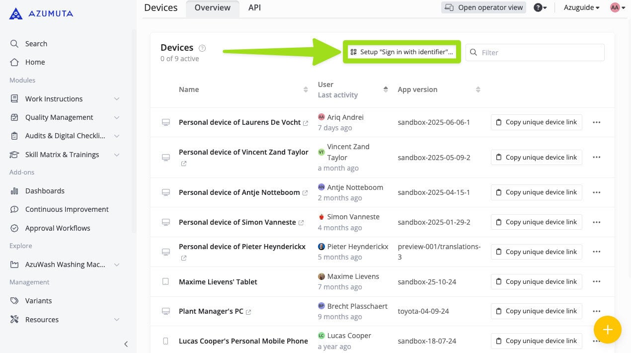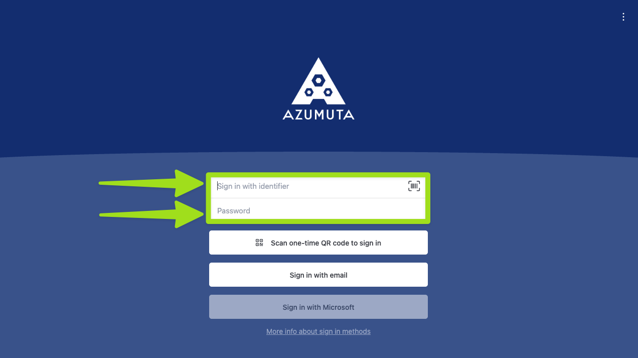 Identifikatoren können von den Betreibern verwendet werden, um sich bei einem Azumuta-Arbeitsbereich anzumelden, sei es in der App oder in der Browser-Version der App.