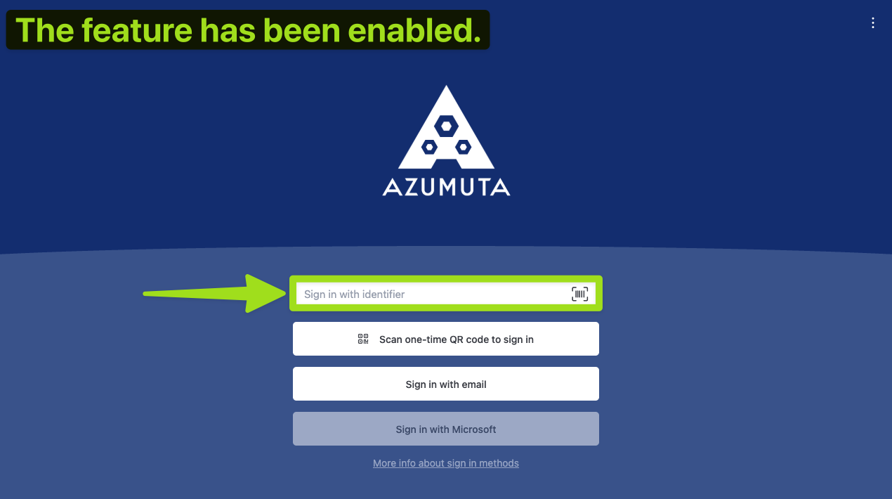 Eine weitere Möglichkeit, sich bei einem Azumuta-Arbeitsbereich anzumelden, ist die Verwendung eines Identifikators. Eine Kennung ist ein persönlicher Code, der üblicherweise zur Authentifizierung eines Azumuta-Benutzers verwendet wird und es ihm ermöglicht, sich in einen Azumuta-Arbeitsbereich einzuloggen.