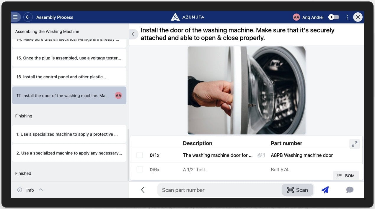 We recently improved our parts check functionality. In the past, after completing a parts check, an operator had to press a button in order to proceed to the next instruction step.