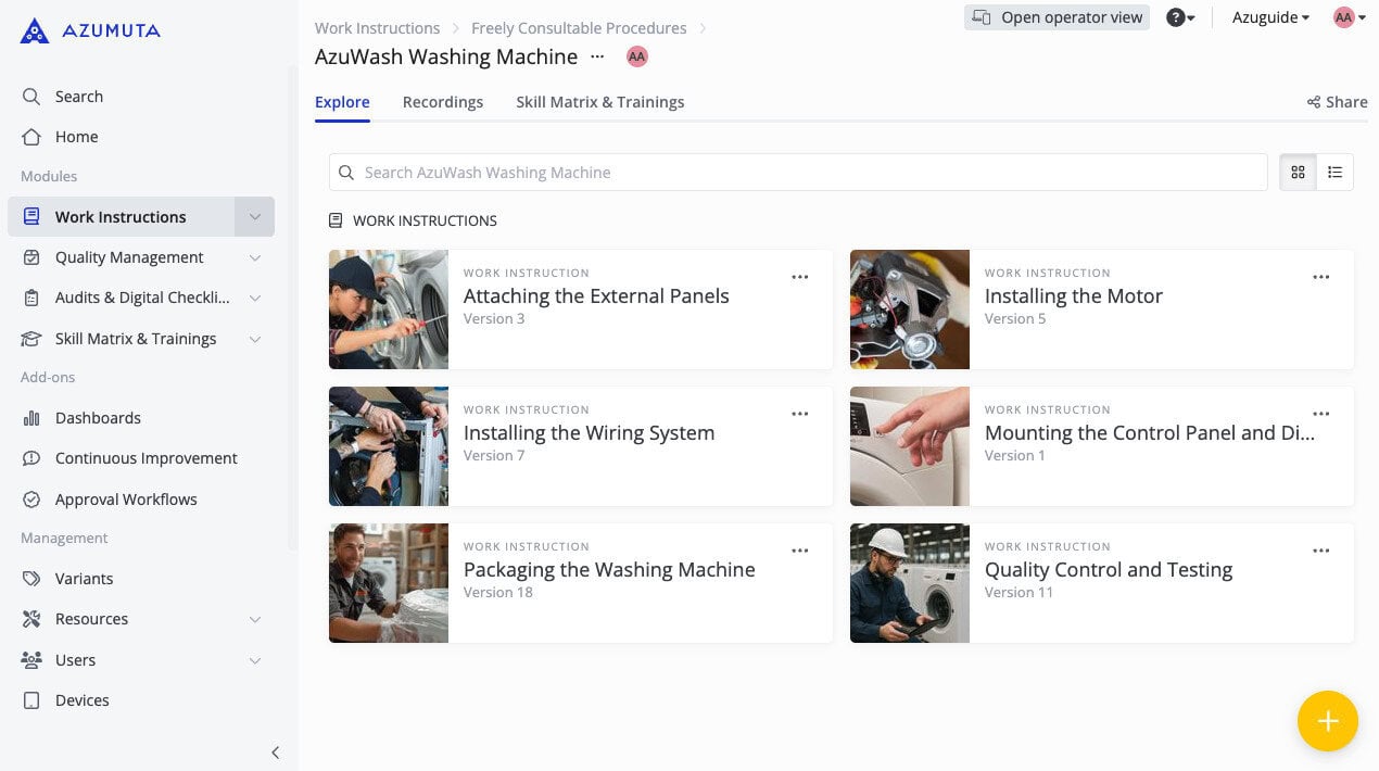This new view enhances the overall user experience by combining visual context with structured information. Whether you’re dealing with only a handful of work instructions or a large library of items, the card view helps you to identify and access items quickly and intuitively.