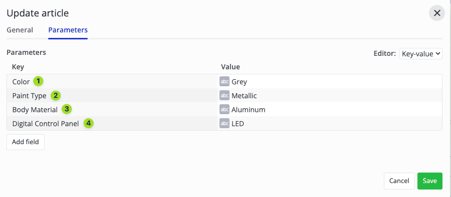 However, on the docx report for a digital washing machine, we want the “Analog Control Panel” parameter to be filled with “None” (as a digital washing machine doesn’t have an analog control panel). How do we do that?