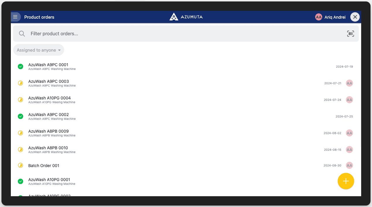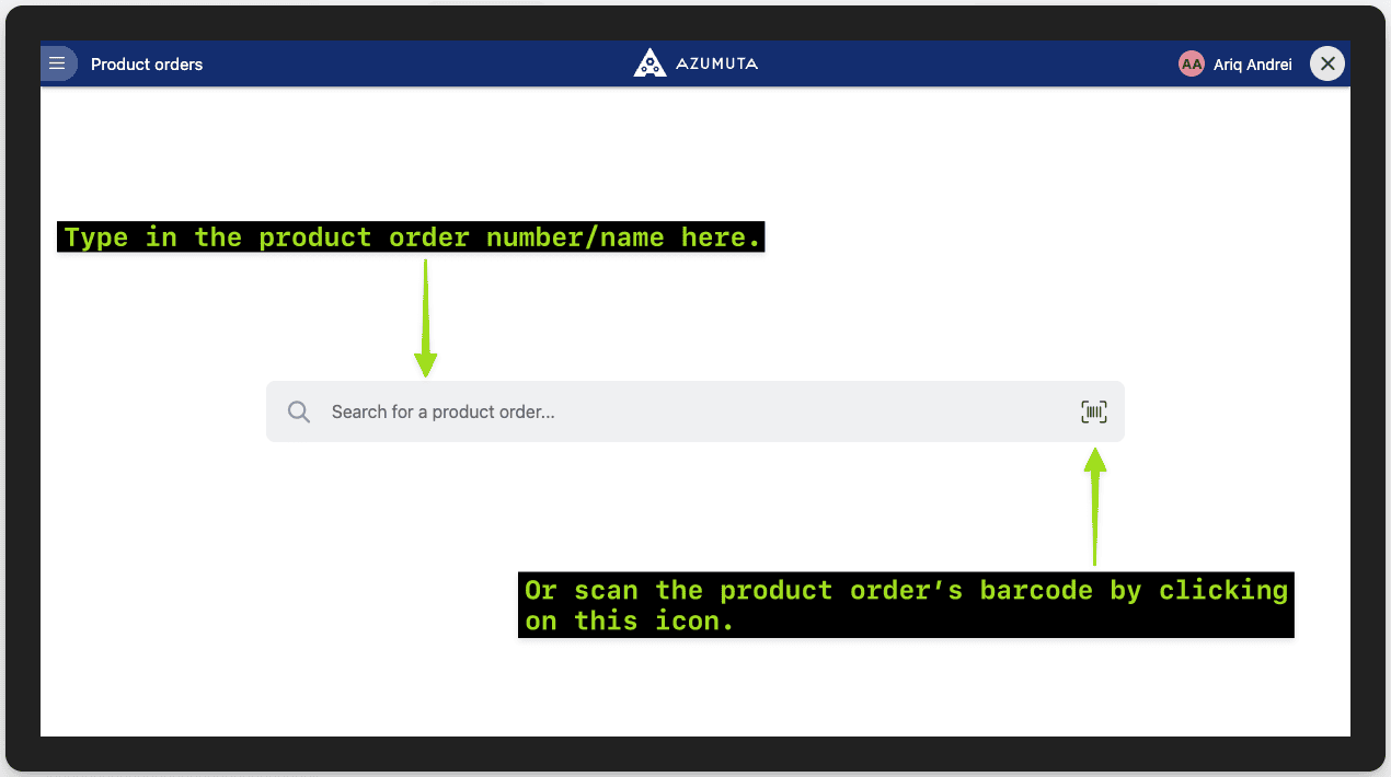 - If you tick this, then there will be no product order list on this device’s screen. That way, a user can only type in the product order’s number/name or scan its barcode/QR code. Afterward, their device’s screen will be automatically redirected to this targeted product order. This feature ensures that a user will always select the correct product order. It also saves the user’s time, as they don’t have to manually look for the product order that they’re going to execute. Take a look at the image below to see what it will look like if you tick this option: