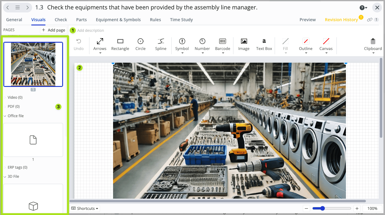 Each work instruction step can have one or multiple visual pages. Check out the image below to see what a visual page is: