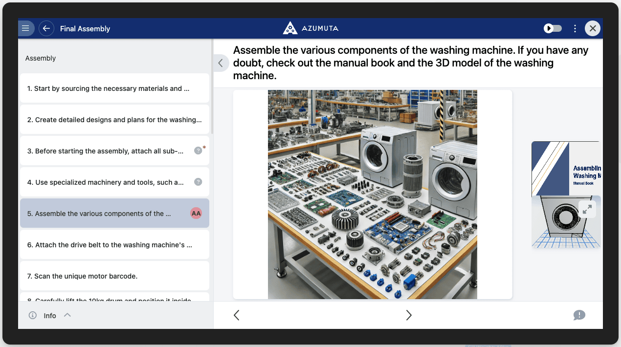 In Azumuta, a single work instruction step can contain multiple visual pages to deliver extra information to your operators. Here’s how to add a page to an instruction step.