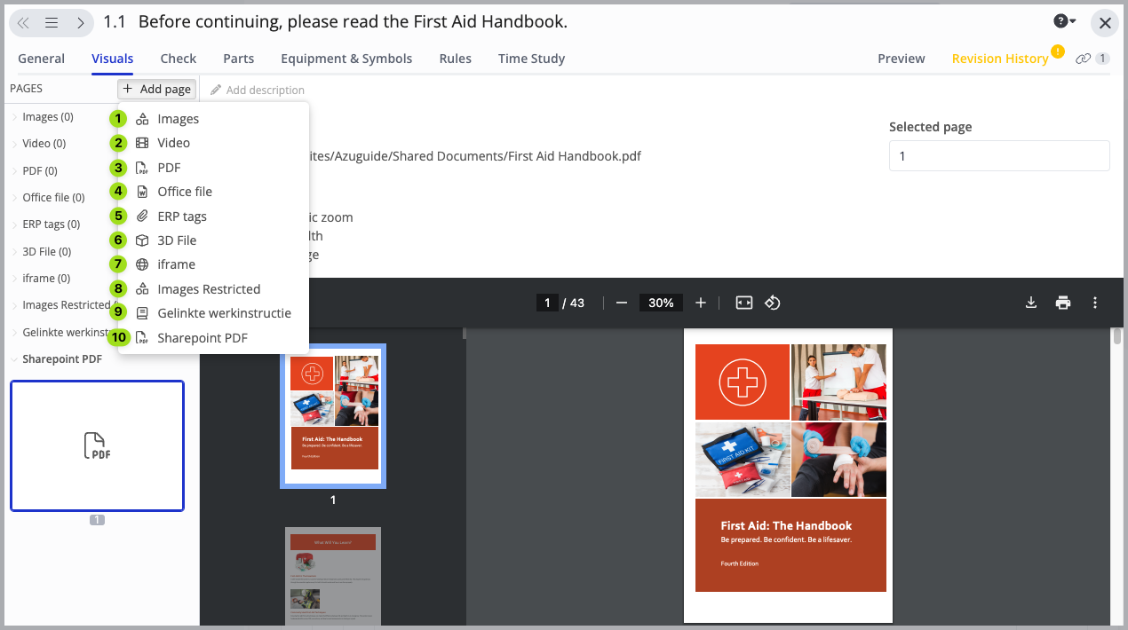 Besides visual elements, you can also add visual pages to a work instruction step.