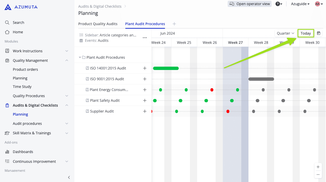 Tip: To navigate to the current day, click on the "Today" button.