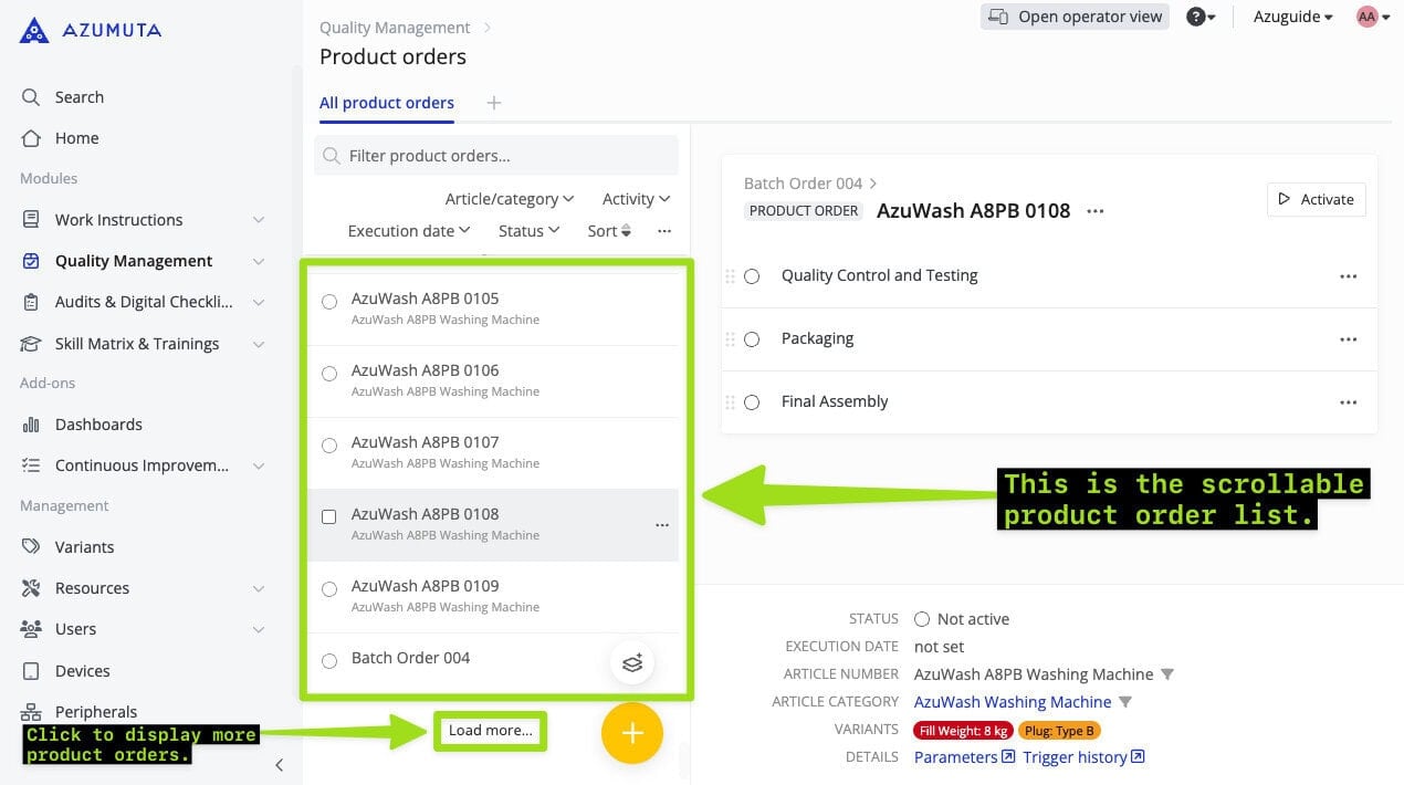 - Click on Quality Management in the homepage sidebar and select “Product orders”.