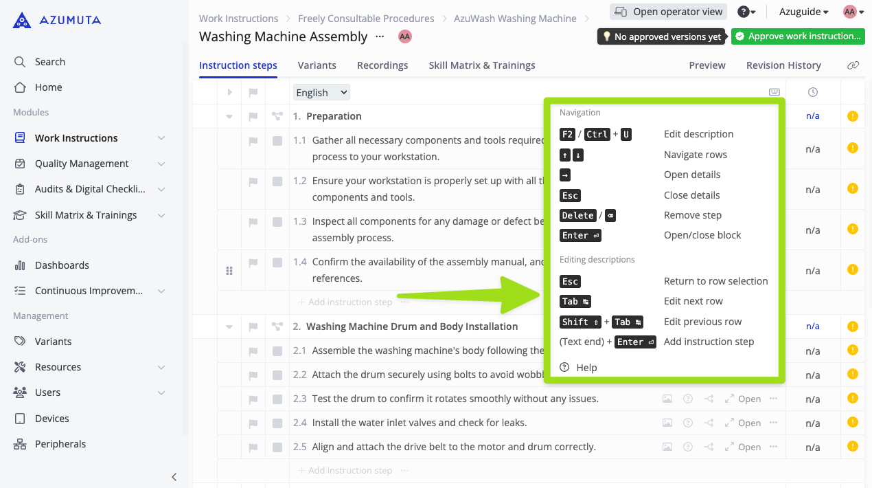 - Navigate to the targeted work instruction for where you would like to paste the content.