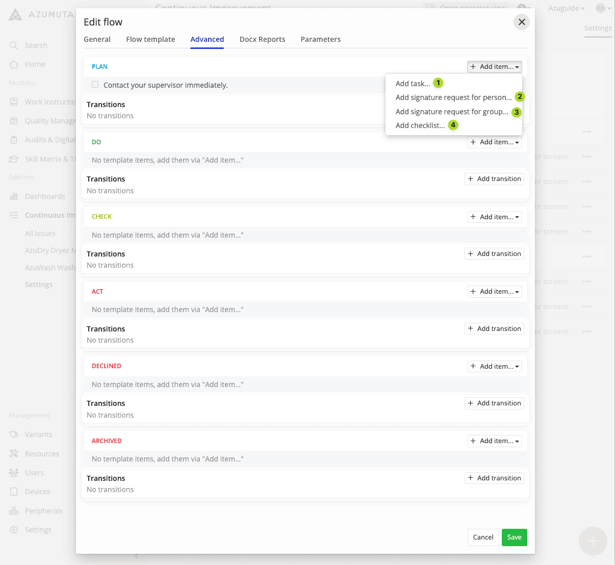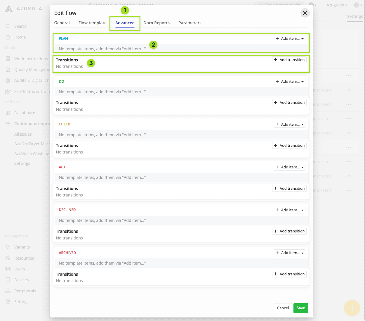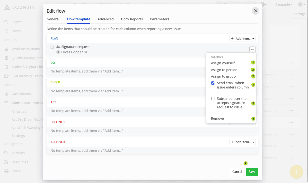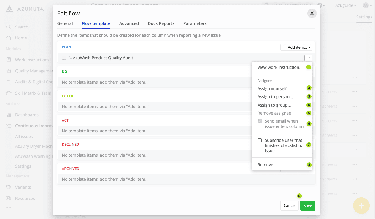 Note: Currently, there are 3 templates for improvement boards & improvement flows: PDCA, Kanban, and 8D. All 3 templates share the same editing settings. In this guide webpage, we will use the PDCA template in our examples.