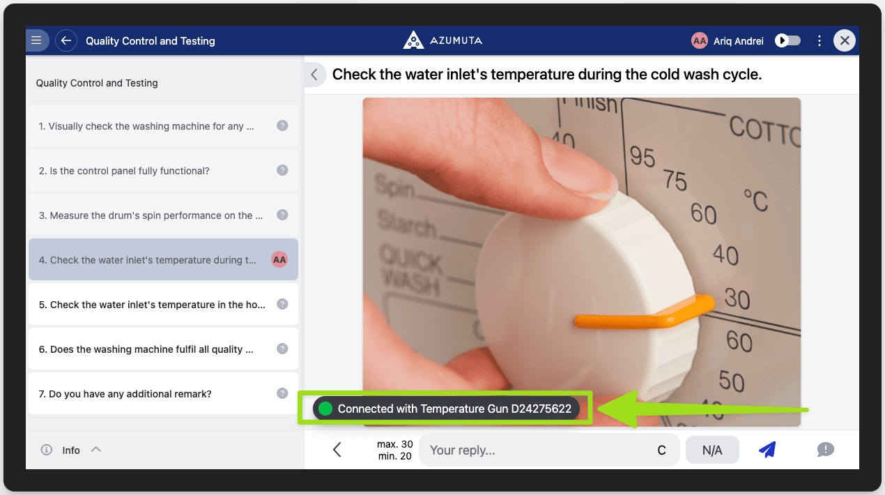 We will use the example of using a temperature gun to show how peripheral devices work within Azumuta.