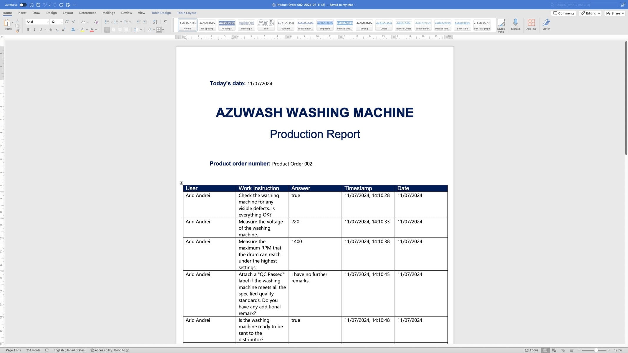 - After your operator(s) has finished/has partially worked on a product order that falls under that article category, download that docx report.