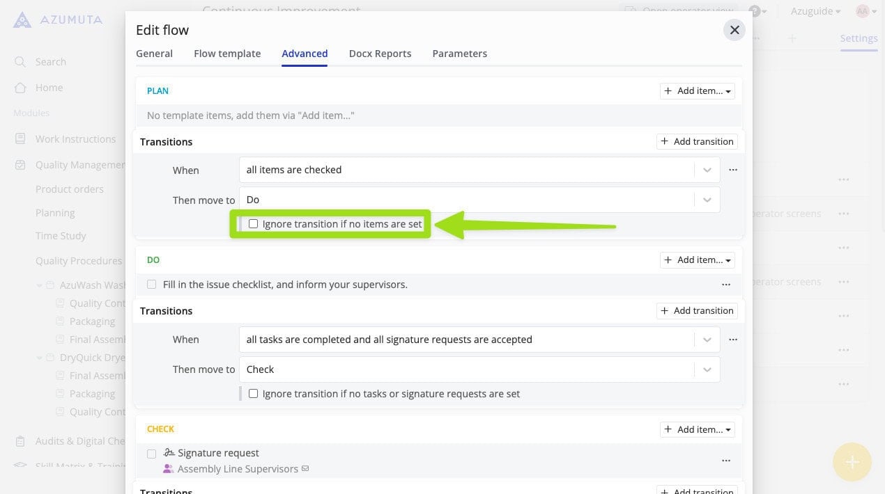 This toggle can be accessed in each transition menu on the Advanced tab when editing an improvement flow.