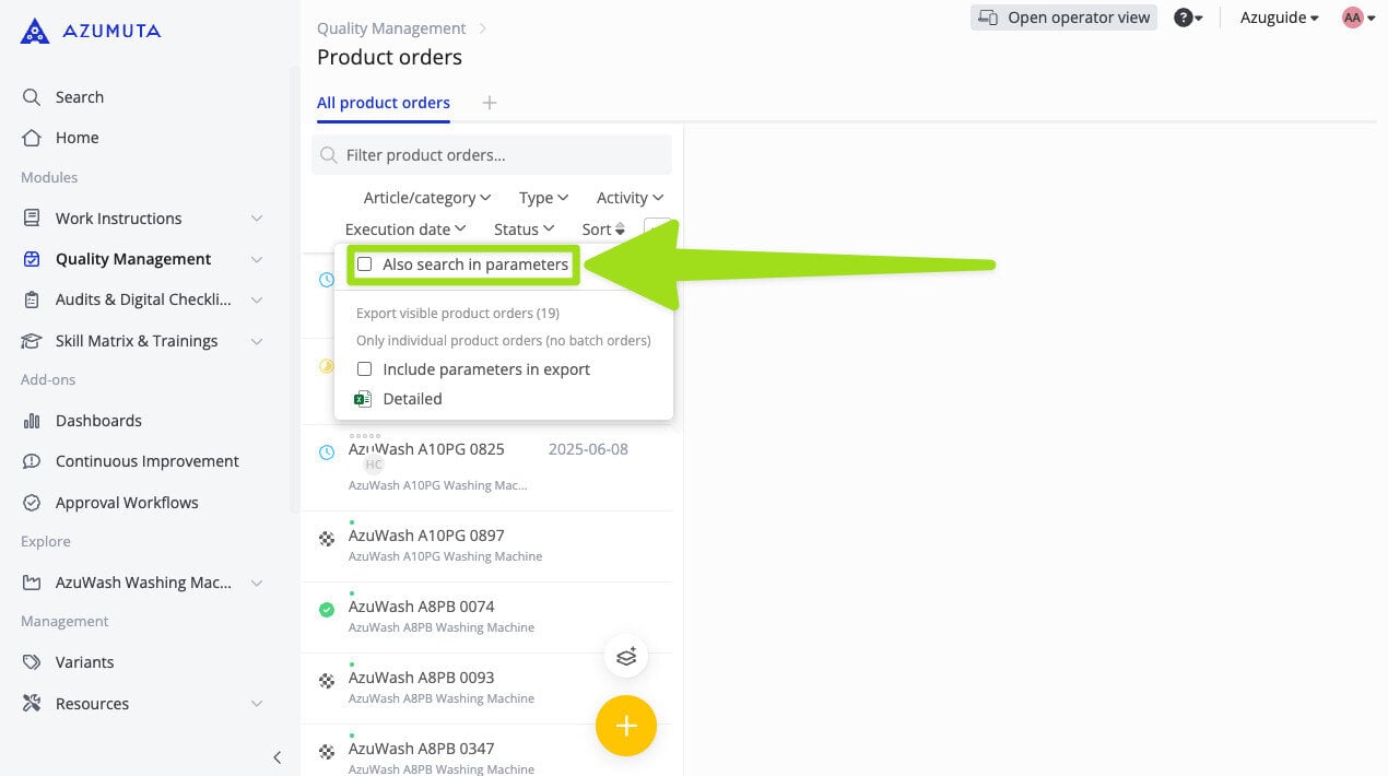 You can now search for product orders based on their parameter values. This update makes it easier to quickly find specific product orders based on their qualitative and quantitative aspects.