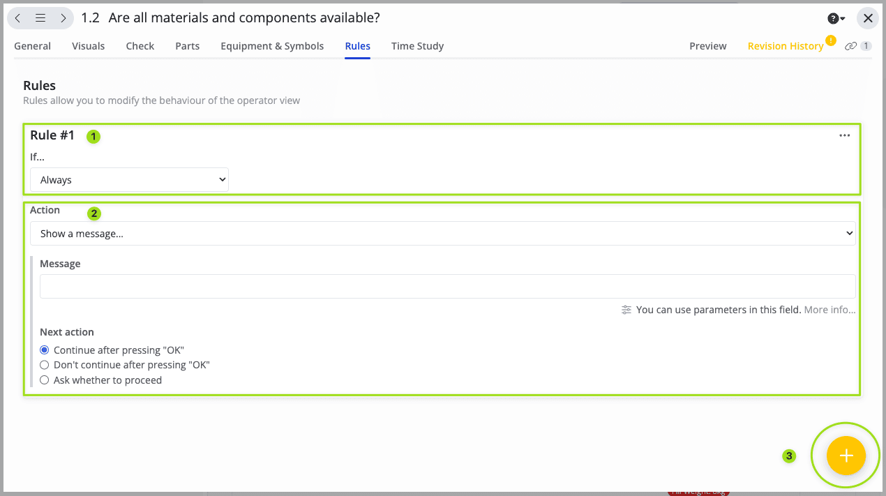 - By clicking on the yellow plus button, you can create a new rule within the same instruction step.