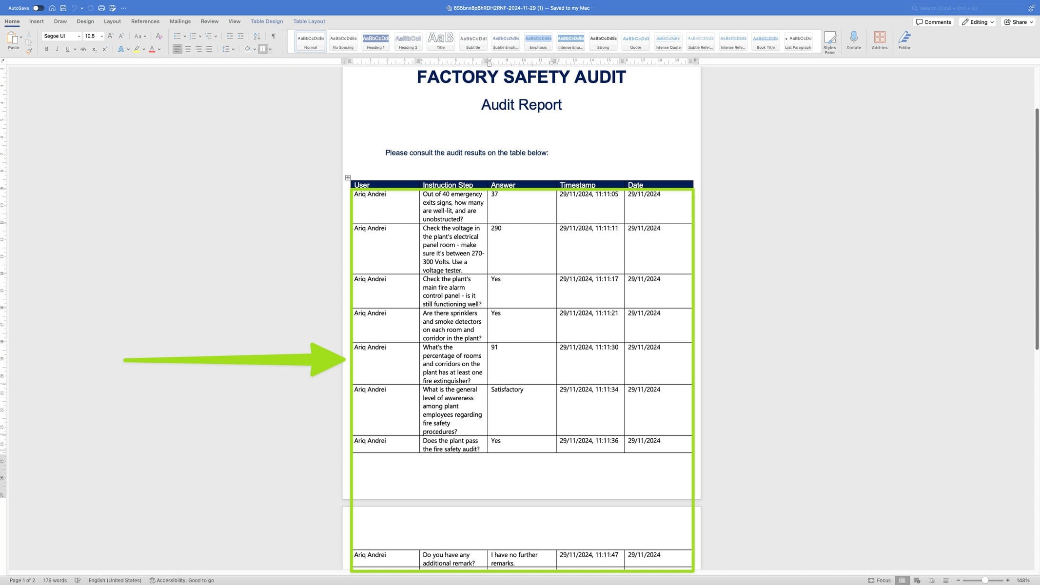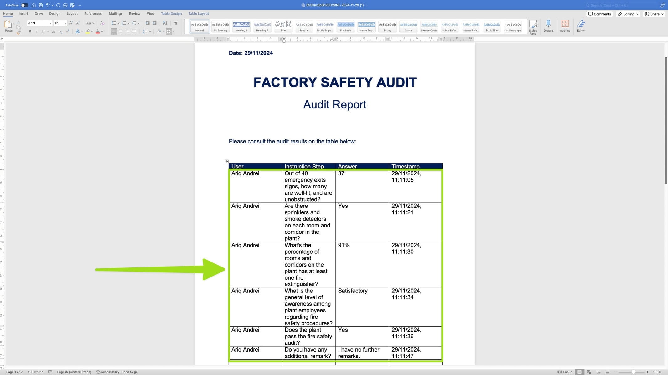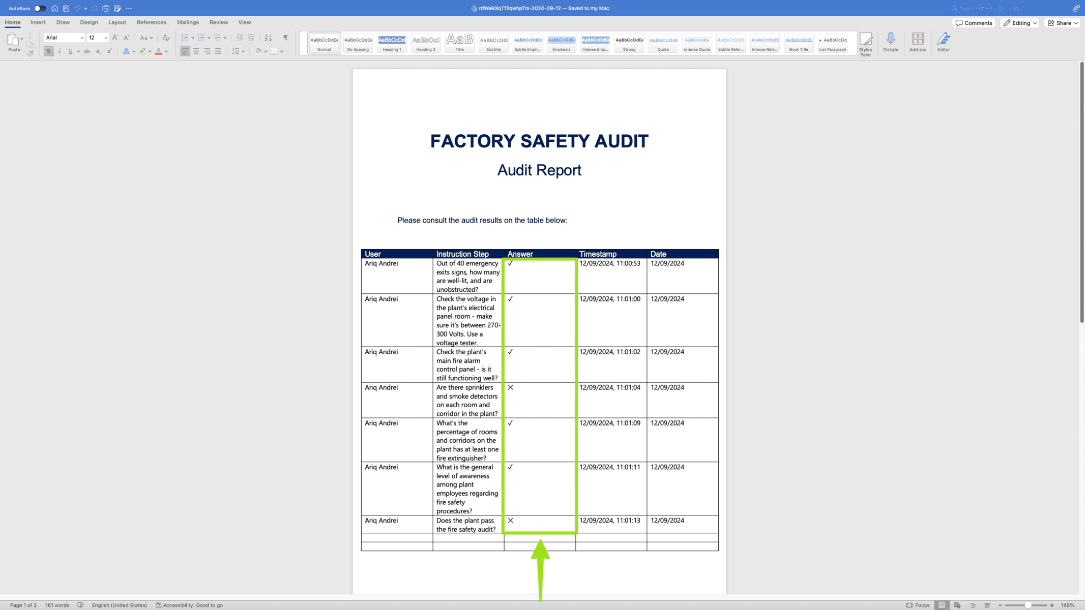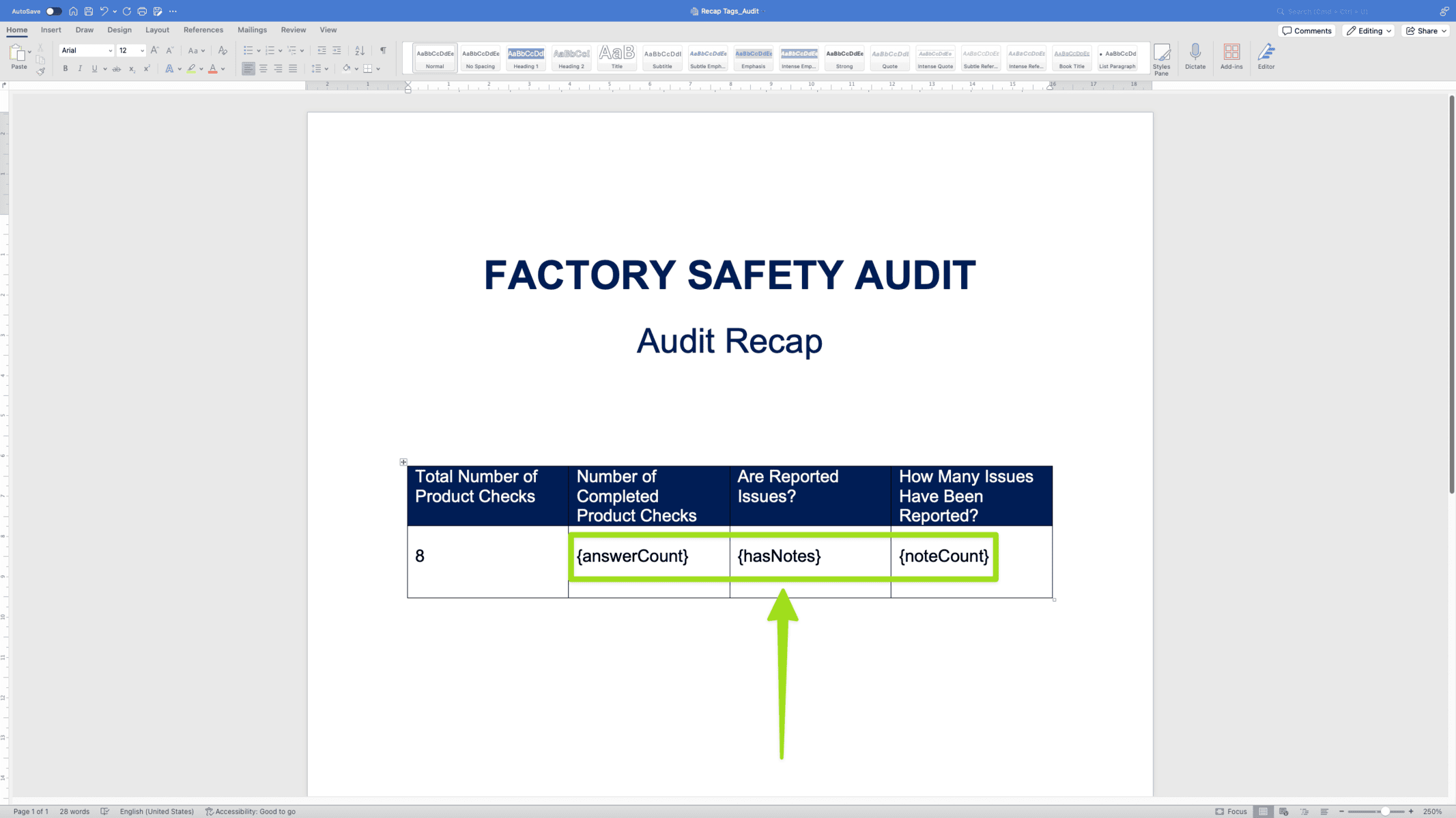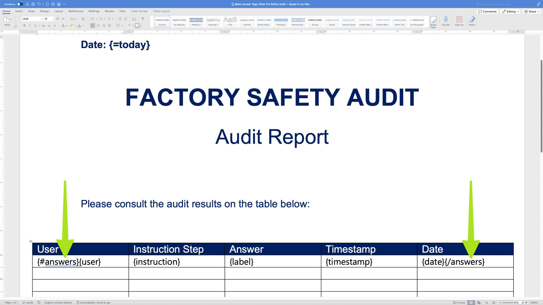 For example, these are the answer tags that we included in our docx report (located within the green box):