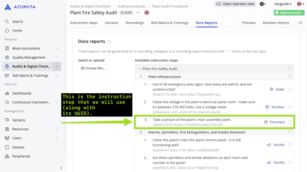 Here’s how you can find the UUID for an instruction step in Azumuta: