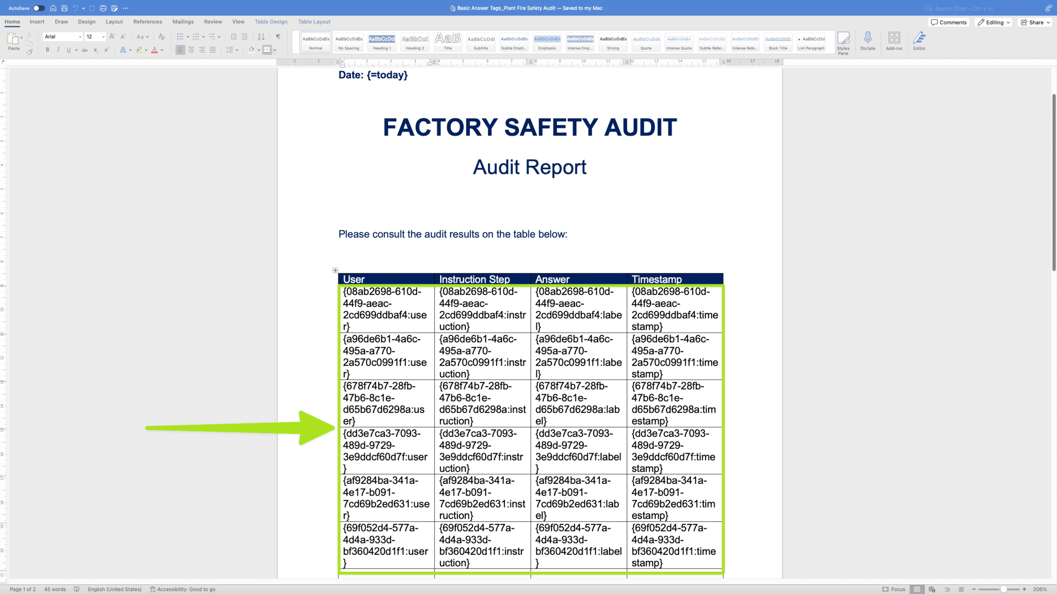 For example, these are the UUID answer tags that we included on our docx report (located within the green box):