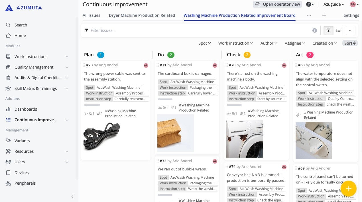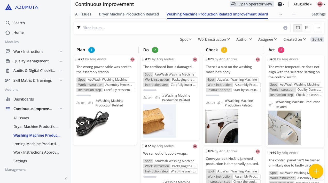 - Compact interface: No media files are displayed, making each issue appear more compact. This allows you to see more issues on your screen without scrolling.
