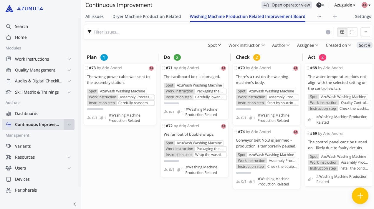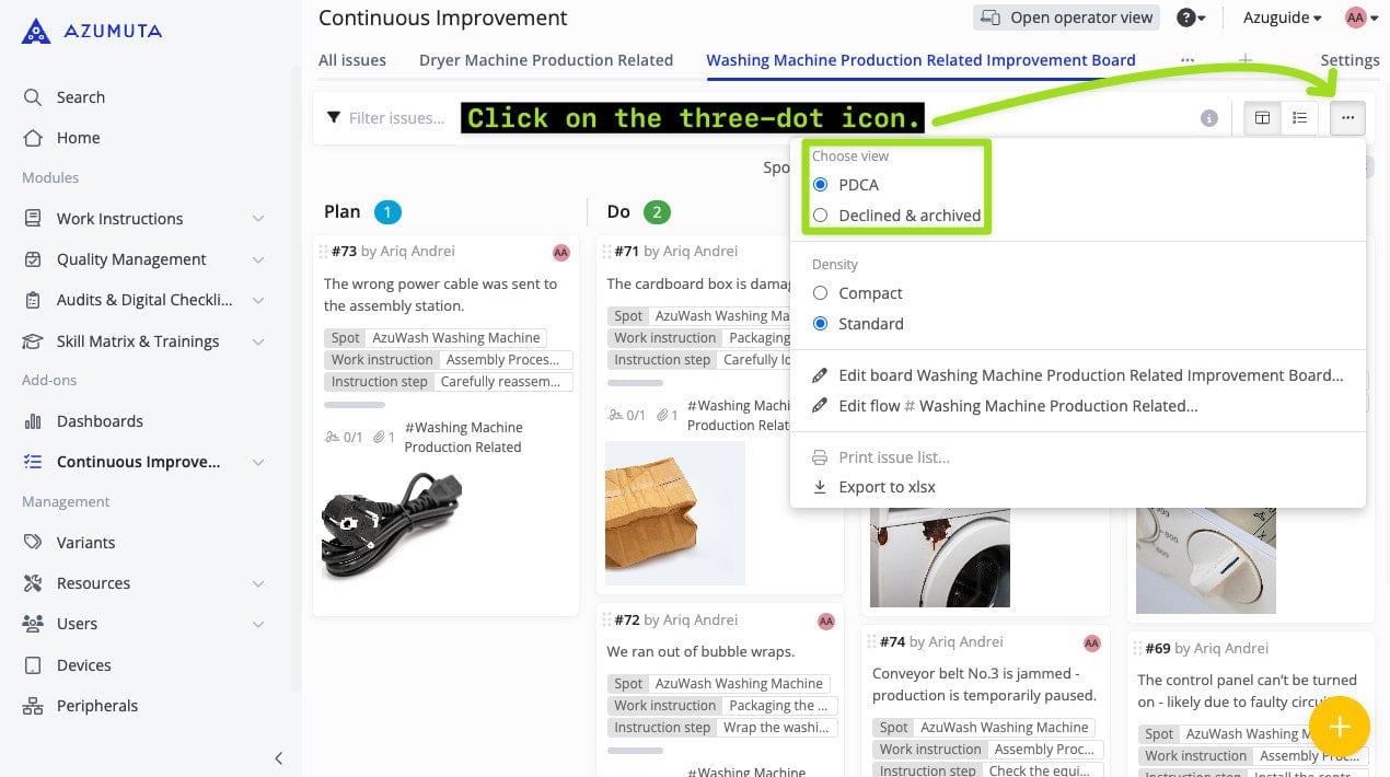 - Go to “Continous Improvement” in the side panel.