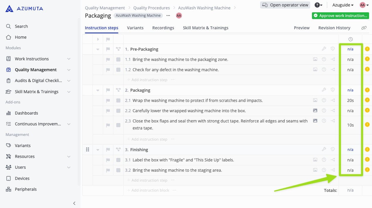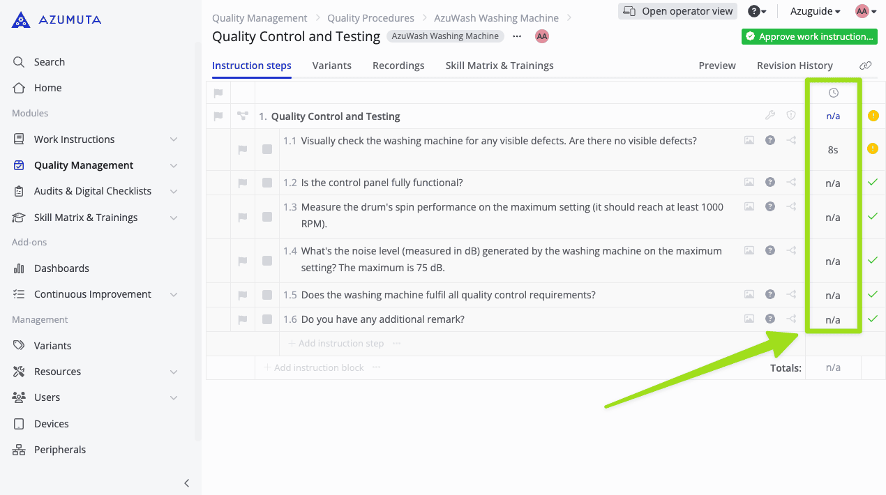 To ensure consistency throughout your work instructions, you can use our timer feature on each instruction step.