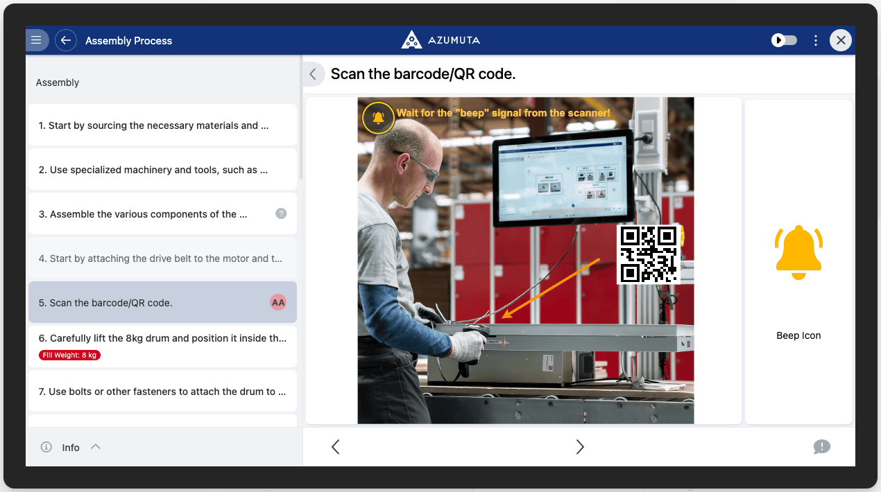 Here’s an example of a work instruction step that uses multiple visual elements, seen from an operator’s screen: