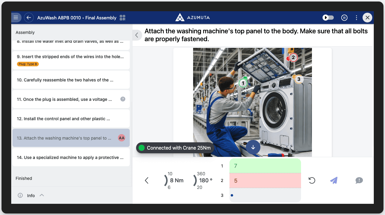 • Enhanced accuracy: Digital work instructions can include multimedia contents (videos, 3D models, attachments, etc) and interactive product checks, which help to ensure that all tasks are always performed correctly.