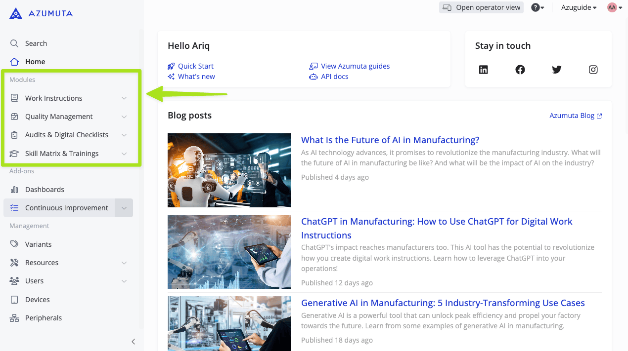 At the beginning of these guides, we will use work instructions made on the Work Instructions module for the sake of keeping things simple. But as we get to the more advanced features of Azumuta, we will show you work instructions made on other modules as well.