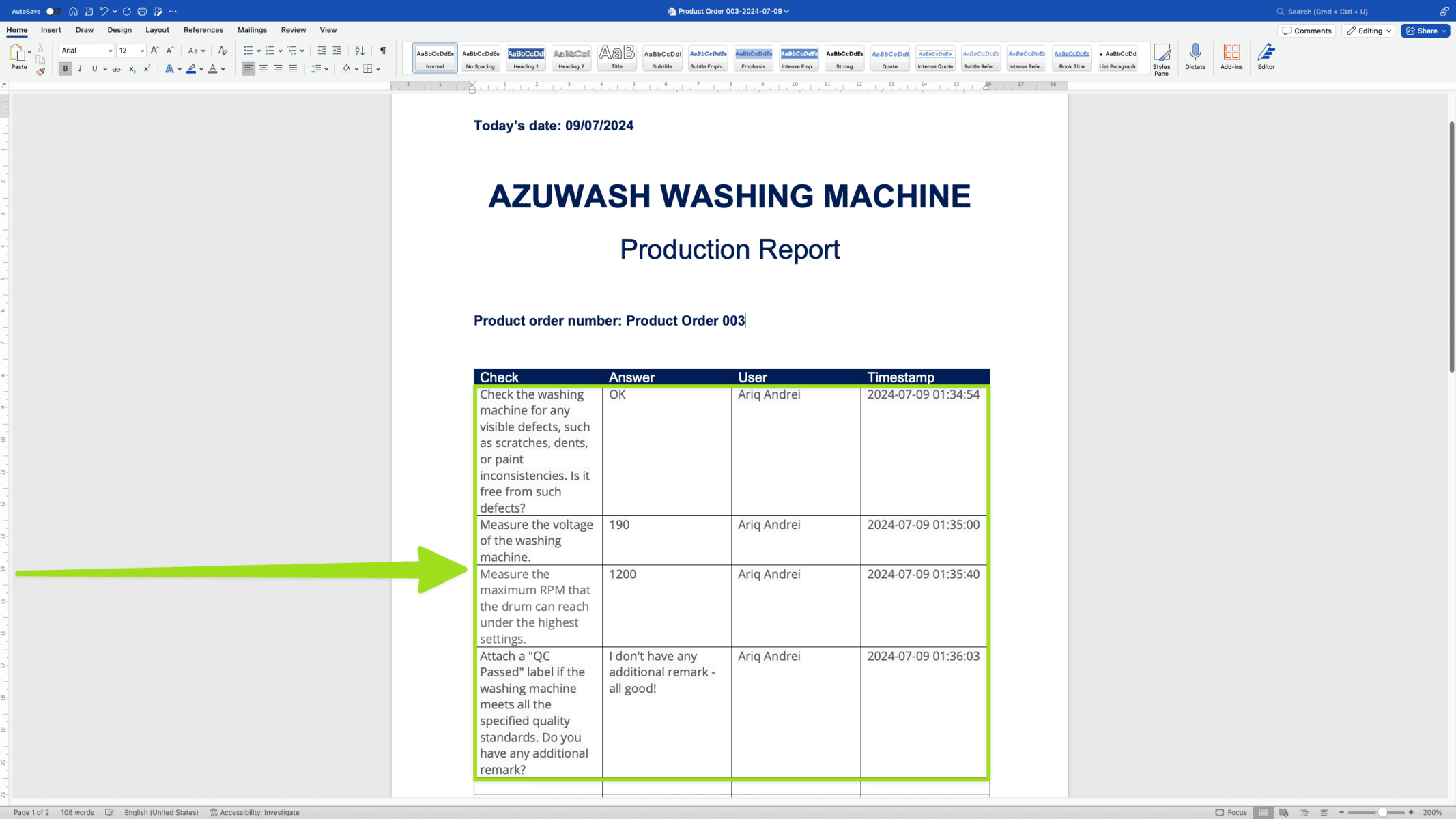 All of these work instruction reports are automatically generated by Azumuta. However, you can also create your own custom-designed reports by using our docx report feature. Simply input the docx report with the desired formulas, upload it to Azumuta, and our platform will automatically fill these customized reports for you.