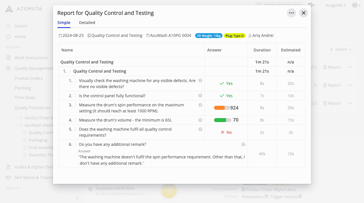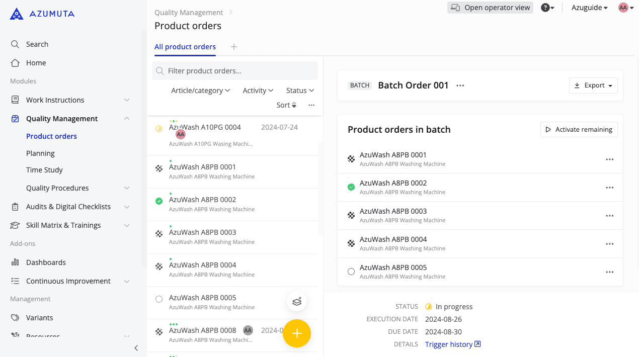 Azumuta’s Quality Management module is your main companion in overseeing all aspects of production in your plant.