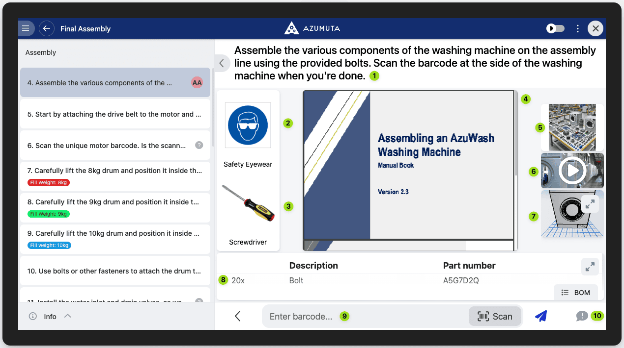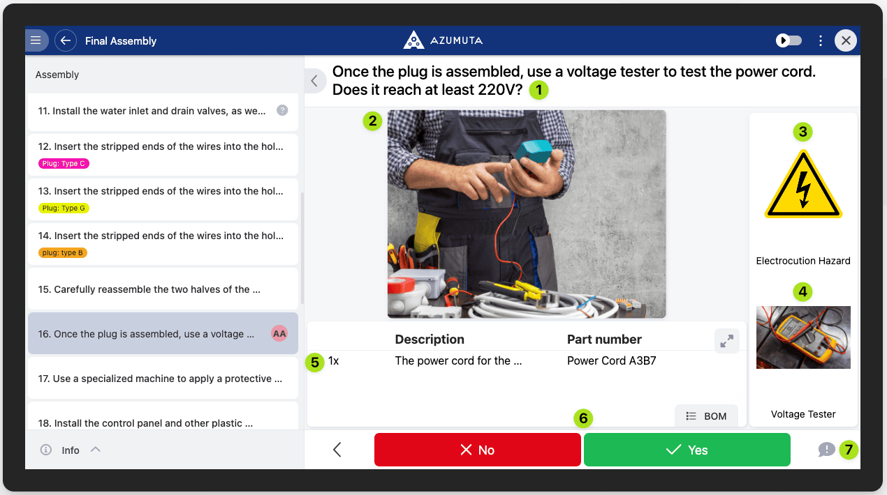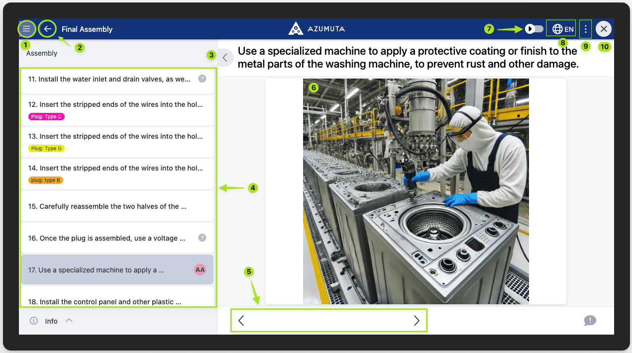 - Navigate upwards or downwards between the work instruction steps. You can also scroll up or down using your mouse.