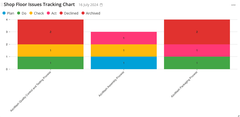 Ce widget montre le nombre de problèmes sur votre espace de travail au cours d'une certaine période, classés en fonction de leur flux d'amélioration - sous la forme d'un diagramme à barres.